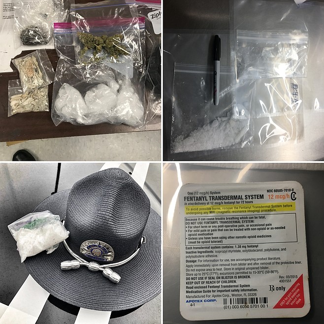 Notable cases involving large amounts of opiates include two arrests for trafficking methamphetamine (1 ounce), one arrest for trafficking methamphetamine and heroin (3 ounces and 1 ounce, respectively), one arrest for trafficking cocaine (1 ounce) and one arrest for felony eluding, felony destruction and felony possession of methamphetamine following a high speed chase.