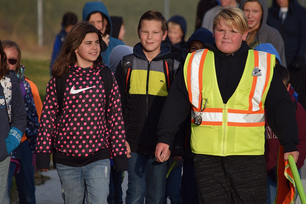MOSES LAKE — About a quarter of Park Orchard Elementary School’s 470 students gathered Friday morning to walk the mile and a half from Cascade Park to school.