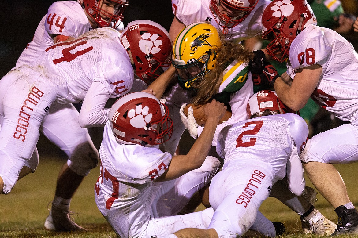 RATHDRUM — With the season hanging in the balance, the Bulldogs picked an opportune time to play their best game, riding the power legs of Dillan Mitton and a stingy defense to down the Hawks 34-19 on Friday night in 4A Inland Empire League football at Lakeland High School.