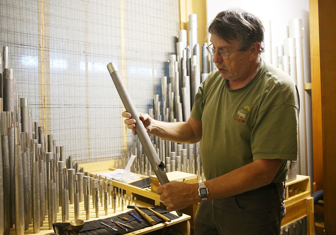 “This is kind of an interesting pedigree of pipework,” said company founder Rene Marceau, plucking one of the pipes out of a row as he worked on the organ Tuesday. "There are some from the original 1909, and then there are some from 1978 and then there are some different sources."