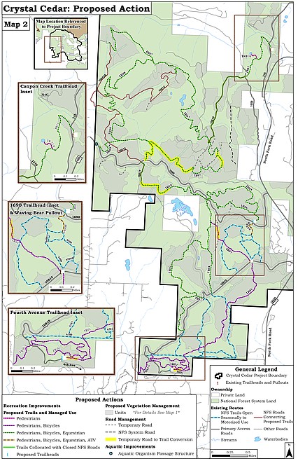 Called the Crystal Cedar project, it also proposes logging commercial thinning on about 2,600 acres of land in several units. Many of the units are off the Crystal Creek and Canyon Creek Roads, as well as off Rabe Road on the backside of Teakettle Mountain adjacent to private property.