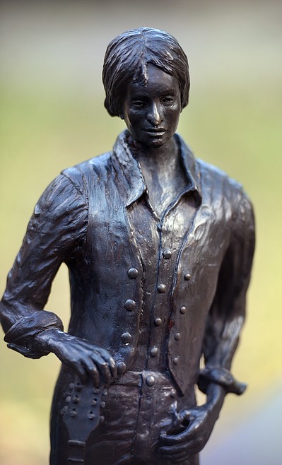 Adamson, then 42, had the most daunting job of his career — he’d never cast a life-sized monumental bronze. He gave the musician shoulder-length hair parted in the middle, not unlike Jackson Browne’s haircut back in the day. But that’s where the similarities end.