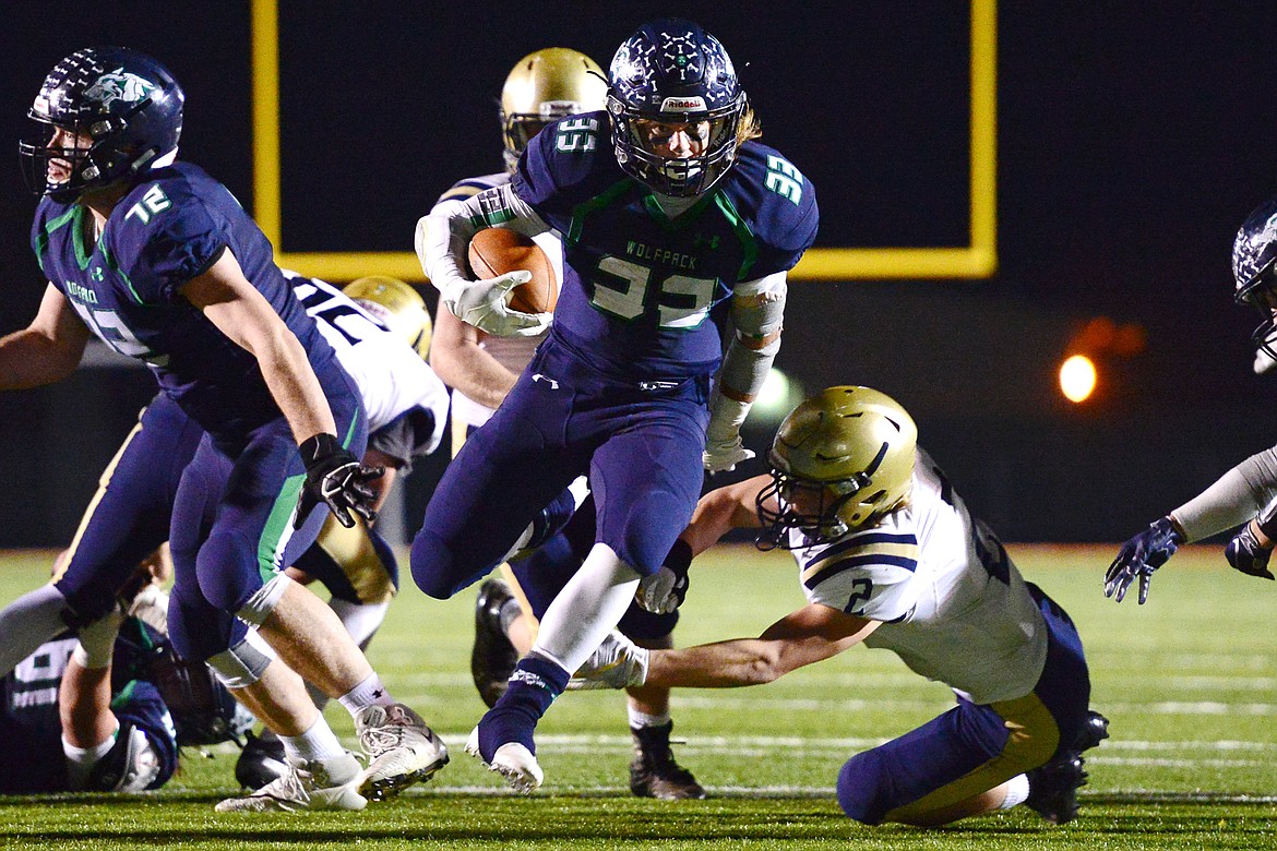 Senior running back Preston Blain scored four touchdowns as the Glacier Wolfpack kept its Class AA playoff hopes alive with a 34-14 romp over the Missoula Big Sky Eagles (2-7) on Thursday at Legends Stadium.