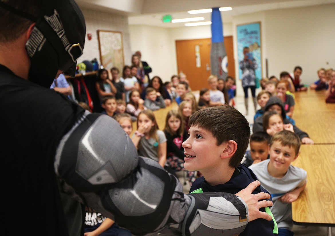 COEUR d’ALENE — Aidan Jonz switched on the Bat-Signal in the Atlas Elementary School cafeteria Wednesday afternoon and, just like in the movies, Batman appeared.