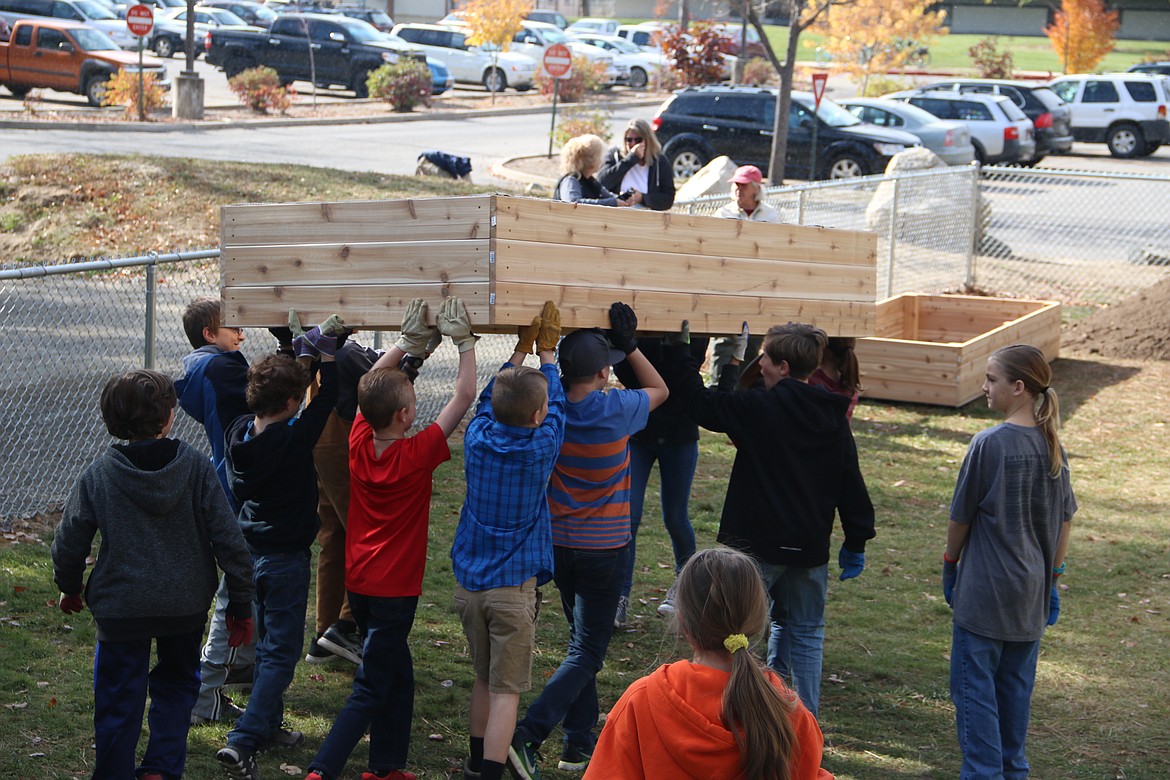 Sandpoint Elks Lodge No. 1376 members donated four raised garden beds, which were installed at the Homeschool Academy's new location by the high school on Thursday.