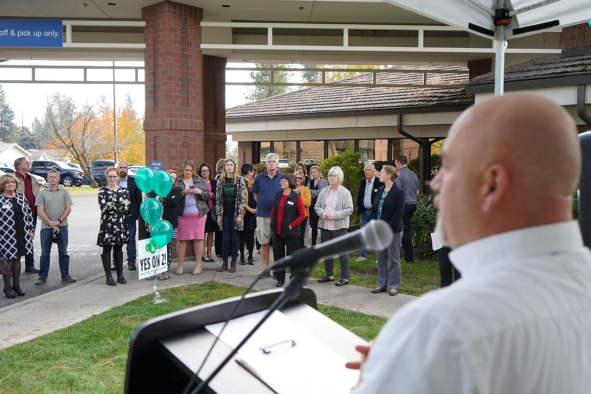 Passing Proposition 2 would cover those previously uninsured, and create jobs in the medical field statewide, he said, as Nancy Mertz watched from the crowd.