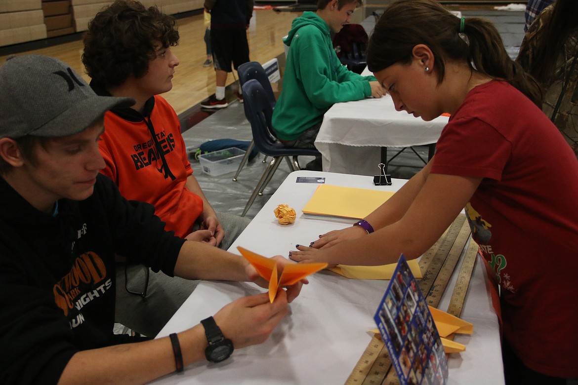 The students had several interactive projects going, including how to make paper airplanes with a competition to find out which ones flew the farthest, marshmallow catapults, paper tower building and electronic snap circuits.