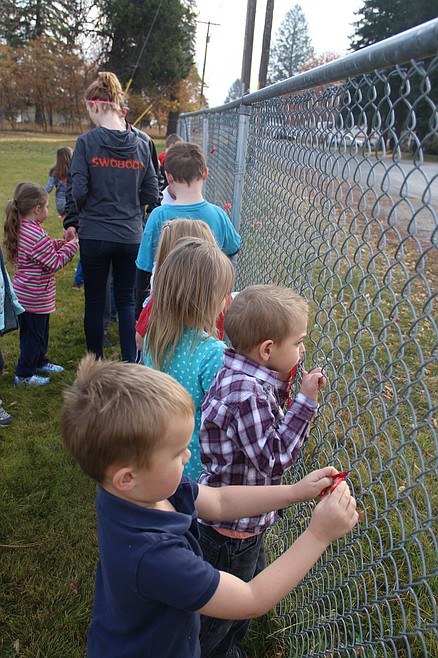 OLDTOWN — Idaho Hill Elementary students gripped their red ribbons as they made their way out to the school’s fenceline last Wednesday.