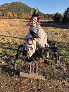 The contest started Oct. 20 and entries were judged on Oct. 27. First place went to a wicked witch by Emily and Janet Park. Second place was a ghoulish spider by Marie Lewis, and third place went to The Gold Nugget RV Park by Mark and Leslie Leenhouts. Complete with a couple of scarecrows wearing “Nugget RV Park” golden T-shirts, with a man (aka, Mark) holding a plunger and the woman (aka Leslie) wearing a pair of galoshes, or are they “ghoulashes?”
