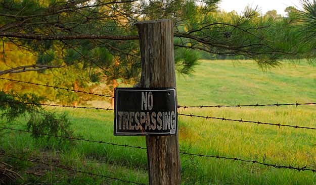 Landowners must post unfenced and uncultivated land with easily-visible “No Trespassing” signs or bright orange or fluorescent paint at each property corner and boundary where the property intersects waterways, roads, trails or rights-of-way.