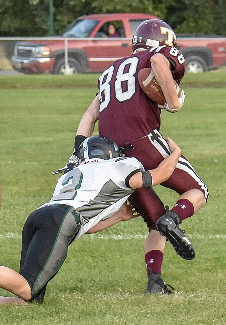 With only a minute and a half left in the game and the ball on the Titan’s 39 yard line, Troy senior Hunter Leighty carried their only touchdown of the game.