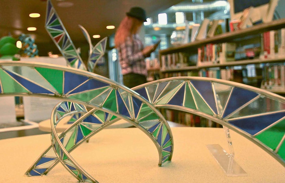 The miniature pieces big enough for table decorations, or for the bookshelf, are small models of street art. They’re used by artists pitching their ideas to the city’s Arts Commission.