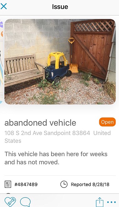 The platform simplifies reporting issues for residents as they don't need to figure out which department to report the issue to. Once it is uploaded into the app, the issue is addressed by a city official who assigns it to the correct department head for review. In the case of a moose on the loose, for example, it is directed to the Sandpoint Police Department.