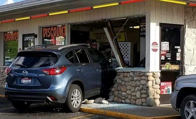 The business at the busy intersection of Seltice Way and Spokane Street was plowed into by a 2016 Mazda CX5 late Wednesday afternoon.