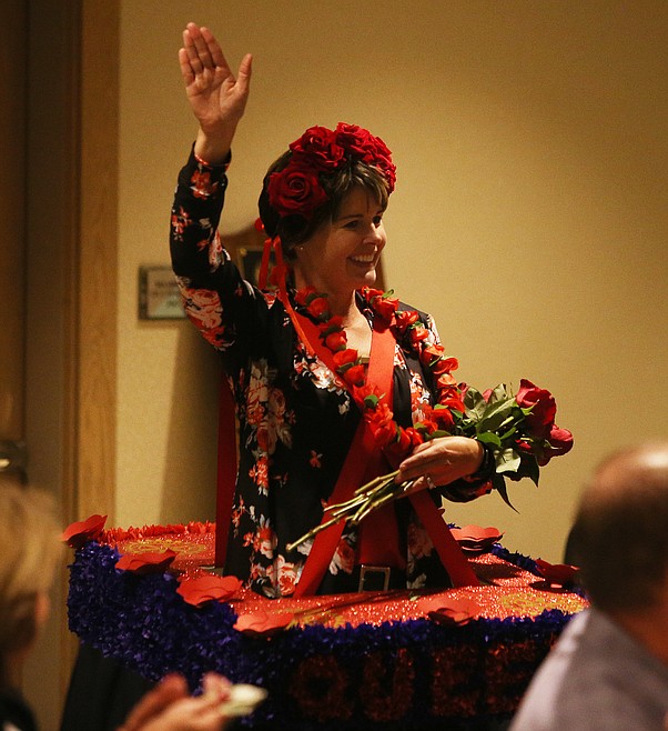 The queen, Rotary president Jody Azevedo, made a grand appearance with her rose crown and personal float during the nonprofit's sale kickoff at The Coeur d'Alene Resort.