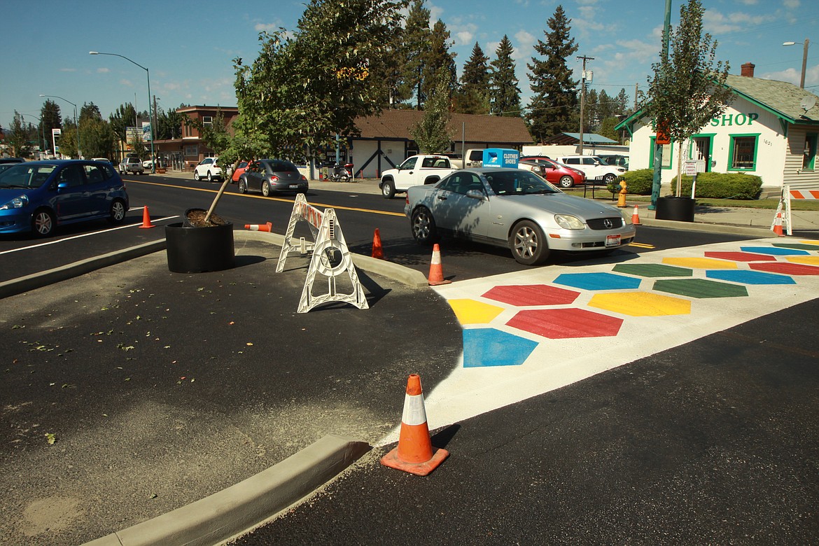 COEUR d’ALENE — The parking on one block of East Sherman Avenue increased by five spots this week as the real estate around Moon Time Cafe and Jimmy’s Down the Street got a splotch of color and some trees.