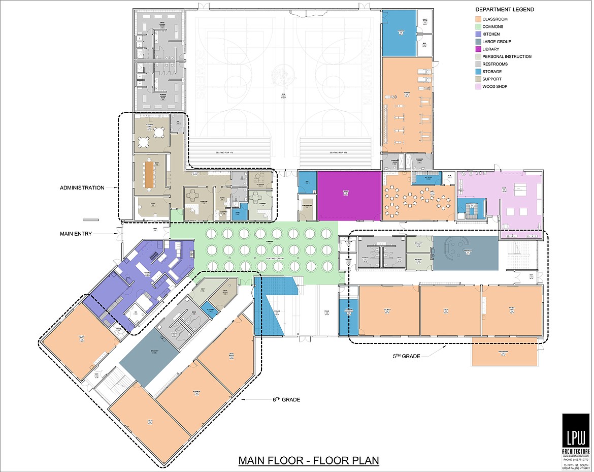 Elements of the original plan are incorporated in the new design, but in a tighter, two-story configuration with shorter hallways. The main level will be approximately 39,740 square feet. The second floor will be 22,830 square feet with an area that overlooks the gym and commons/dining areas. Efficiencies worked into the new construction will help the project stay within budget constraints, according to Grebe.