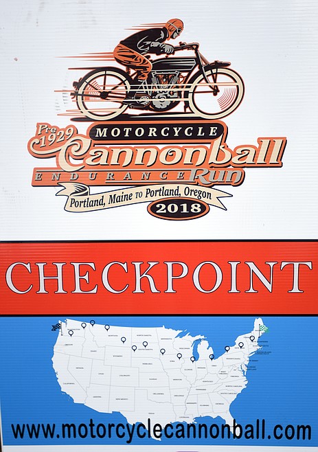 Detail of the Pre 1929 Motorcycle Cannonball Endurance Run sign outside the Red Lion Hotel in Kalispell on Thursday, September 20.(Brenda Ahearn/Daily Inter Lake)