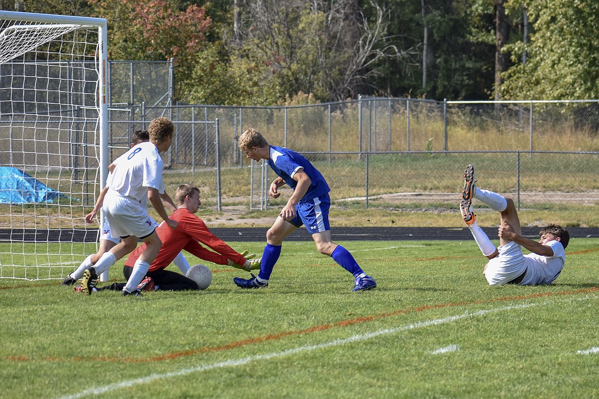 Senior Libby goalkeeper Elijah Smith held fast in front of the net, with several saves that had him diving or leaping to protect the goal. But, a shot across the goal slipped past him with only nine minutes left in the half, and the Vikings took the lead, 2-1.