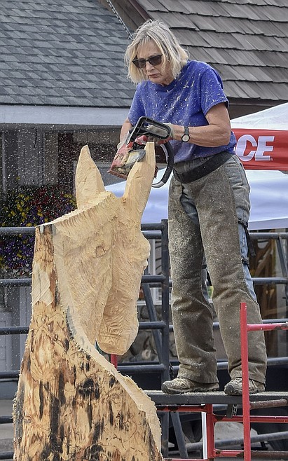 Julie Zimmerman, a carver from Missoula who has been working with a chainsaw for about three years, had some misgivings initially.