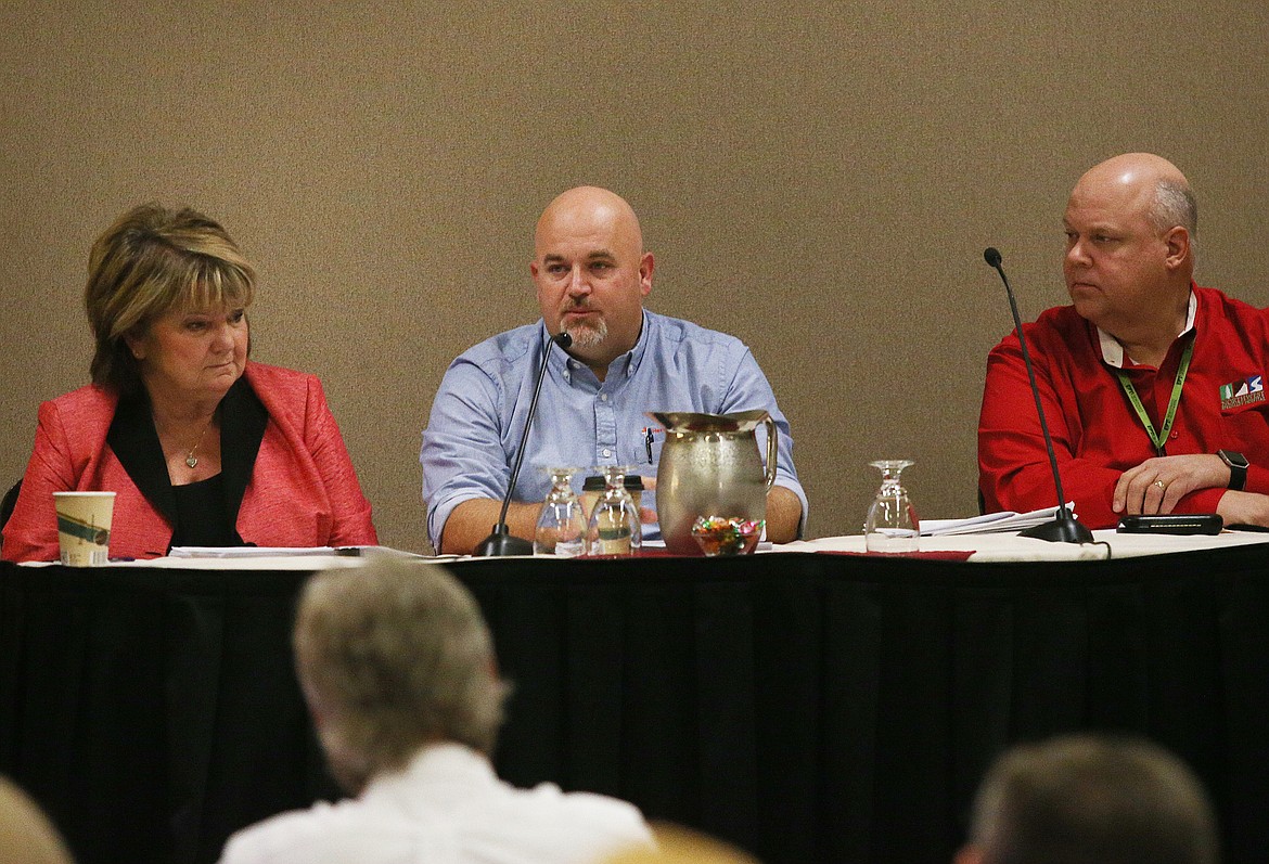 Mike Baker, Heritage Health CEO; Patt Richesin, Kootenai Care Network president; and Rick Rasmussen, Northwest Specialty Hospital CEO, discussed during Tuesday's Legislative Forum presented by the Coeur d'Alene and Post Falls chambers of commerce the Medicaid expansion proposal that will be on the Nov. 6 ballot as Proposition 2.