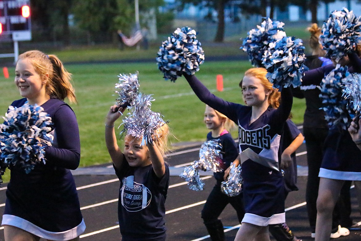 At last Friday’s game, a throng of cheerleaders delighted the crowds. The high school and middle school cheerleaders joined forces to teach more than 40 young 2018 Future Badger Cheer Camp members. They practiced hard and not only performed during halftime, but during the first half of the game as well. They showcased what they had learned, including cheers, a dance, stunting and tumbling.