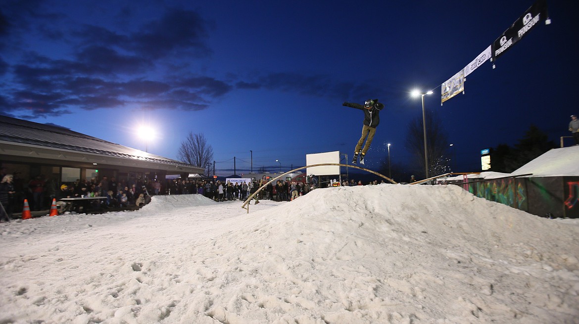 Participants of all ages strolled up to the registration table hauling bags containing the 15 cans of food donations required to compete, then strapped on their gear to jump, slide, grind and soar through the air to show off their board and ski skills for the judges. They were evaluated on difficulty, style, consistency, landing and variety, and people came from all over the Northwest to join in the fun.