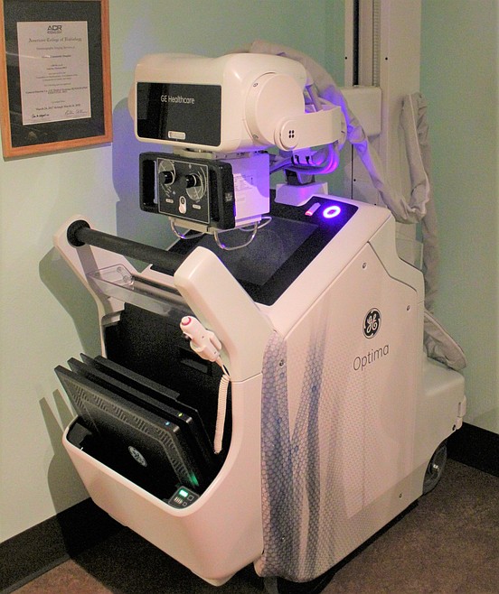 The portable X-ray machine lets staff go to the patient, rather than the patient come to the X-ray facility at the hospital. It has an arm that extends and allows for easy X-ray images of the chest, abdomen, pelvis and extremities. No film is used, rather the images are sent through PACS, or the Picture Archiving Communication System said Chris Watson, the manager of radiology at Mineral Community Hospital. Many hospitals share in this system, Medical Imaging Associates, which is based out of Idaho Falls, Idaho.