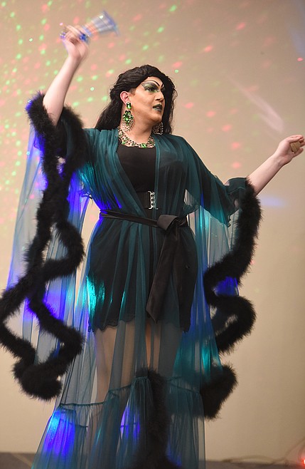The emcee for the evening was Miss Jade, who grew up in Arlee and now lives in the Portland, Ore., area. There were performers from Missoula and Bozeman, going by stage names of Hex Shadow and Anita Shadow. Miss Juicy Bouvier was a Diana Ross lookalike who was “spot on” in dancing and lip synching “I’m Coming Out.” The emcee and performers were all volunteers for the event.