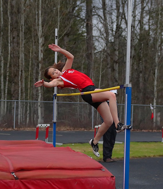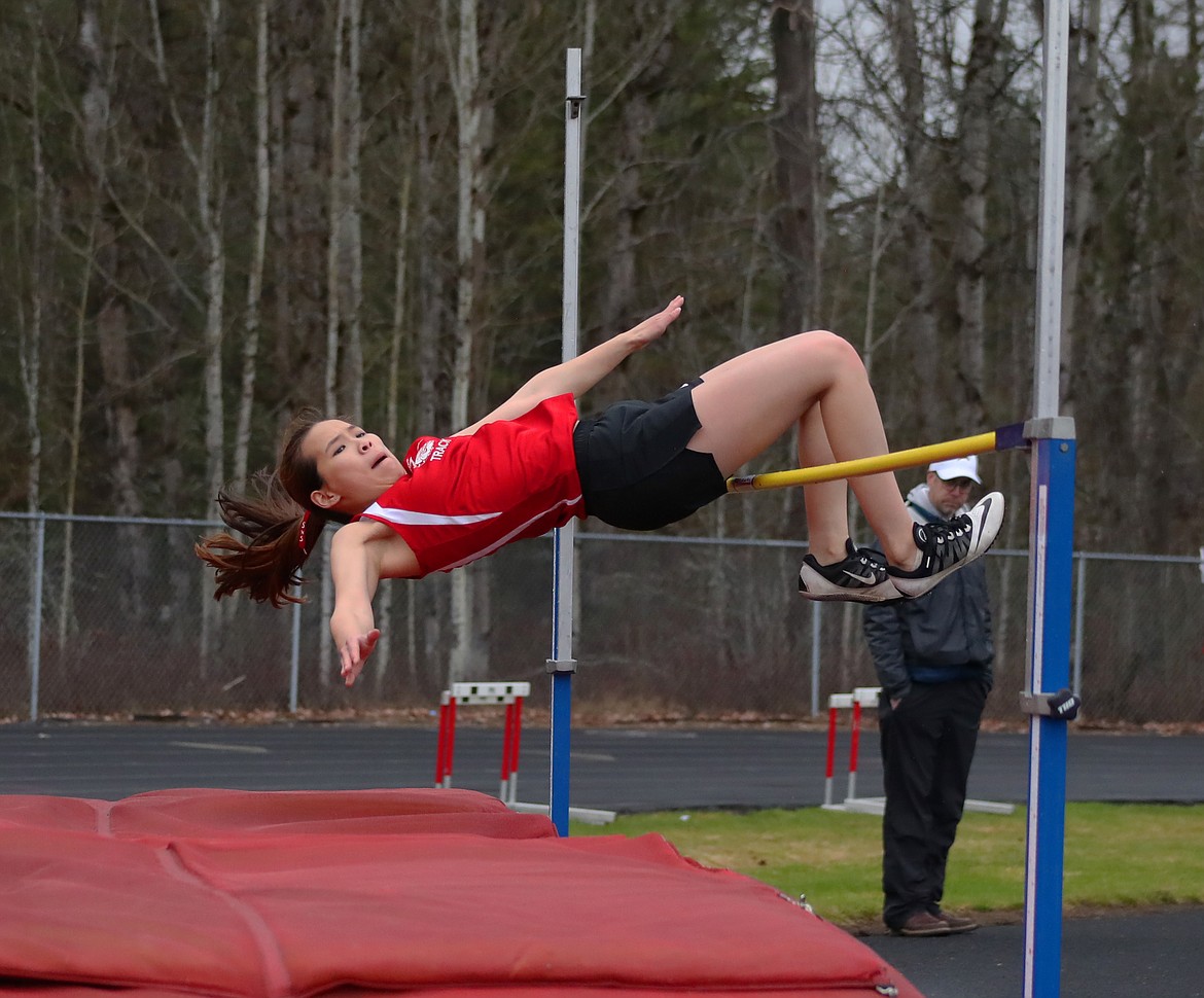 High jump — 1. Emma Ramage (CDA) 5-0. 2. Elaine Huang (Sandpoint), 4-10. 3. Summer Kastning (Lakeland), 4-8.