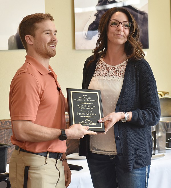 Teacher of the Year also had two winners, both teachers at Ronan High School. Casey Lunceford, the new Vo Ag teacher, was thanked for moving the FFA and 4-H groups forward and helping with the arch reconstruction project. History and Social Studies teacher and wrestling coach Dylan Kramer was cited as “a dedicated teacher and coach” that “not only shows his passion for his content area, he teaches about life.”