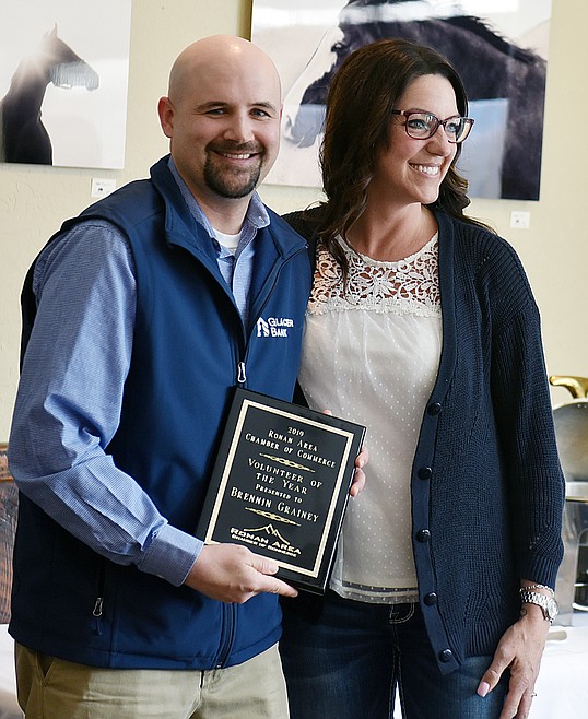 Two people were chosen as Volunteer of the Year. Brandy Chisholm of Access Montana was noted for her continued community service after stepping down from the Chamber board. “We see her at every community event and are so fortunate to have her,” said Lacy Cates, Chamber board member. The second recipient, Brennin Grainey, helps organize the annual Thanksgiving and Ag Appreciation Dinners, and “volunteers literally everywhere.”
