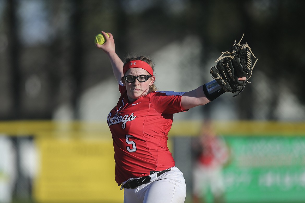 Brooklen Steiger wore a pitch, then senior catcher Ember Dewey drew a four-pitch walk at the ensuing at bat, then Natalie Petit sent Steiger home with an RBI single. Ashley Authier’s five-pitch walk prompted a pitching change from the Hawks, but the damage was already done. The Bulldogs led 4-0 once Woolley came back to the circle.