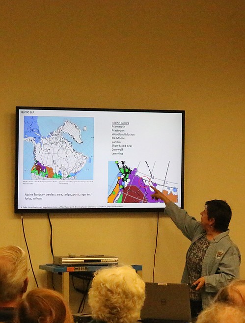 BONNERS FERRY — “Fourteen thousand years ago — if we were here — there would be a thousand feet of ice over our head,” U.S. Fish & Wildlife Service Zone Archaeologist Carla Burnside told the packed barn full of people during the ‘Kootenai Valley After the Glaciers’ slide presentation at the Kootenai National Wildlife Refuge.
