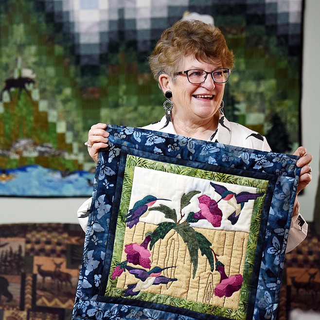 Ten years ago Sherry Wheeler walked into her first quilt guild meeting, found an unfinished small quilt of a hummingbird and instantly knew it was the guild she wanted to join. She’s been a member of the Columbia Falls Teakettle Quilt Guild ever since.