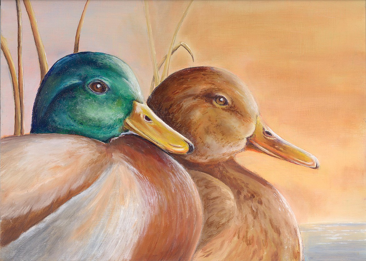 Whitefish High School student Jade Greenberg received a first-place ribbon in the 10th- through 12th-grade division with her oil painting depicting a male and female mallard pair, while Jackson Hall of Eureka placed second.