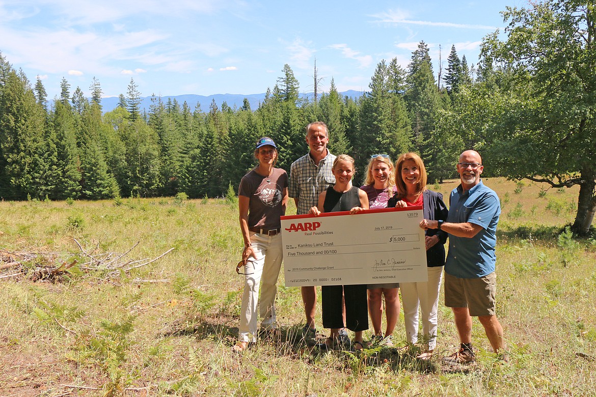 The funds were presented to Kaniksu Land Trust officials Monday by Lupe Wissel, AARP Idaho state director.