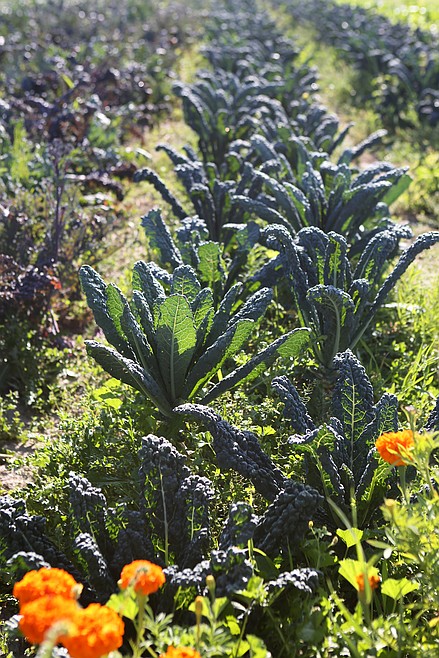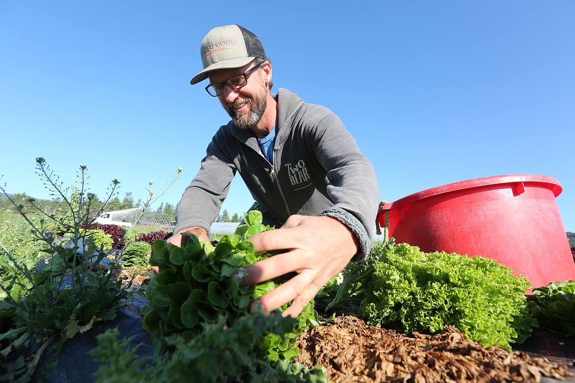 Under a warm morning glow, farmer Todd Ulizio kneels between rows of vibrant lettuces, picking heads in colors of purple, green and reddish brown. He clips each plant so the leaves fall into a large tub to be washed, bagged and sold at the Thursday-evening farmers market in Columbia Falls.