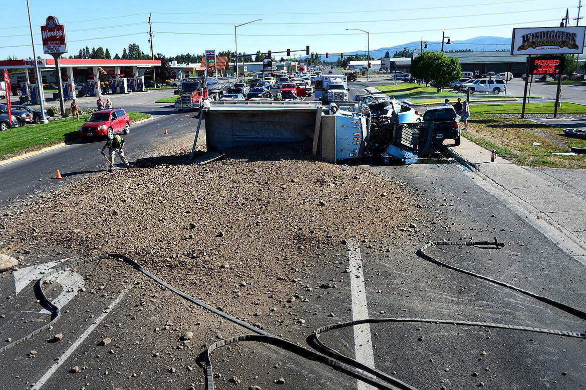 The accident happened just before 5 p.m. as the roadways filled with after-work commuters. Cleaning up the spilled load of gravel took time, and traffic was rerouted to alternative roads but created near gridlock conditions for a while on roads such as Whitefish Stage Road, Rose Crossing and other neighborhood routes.