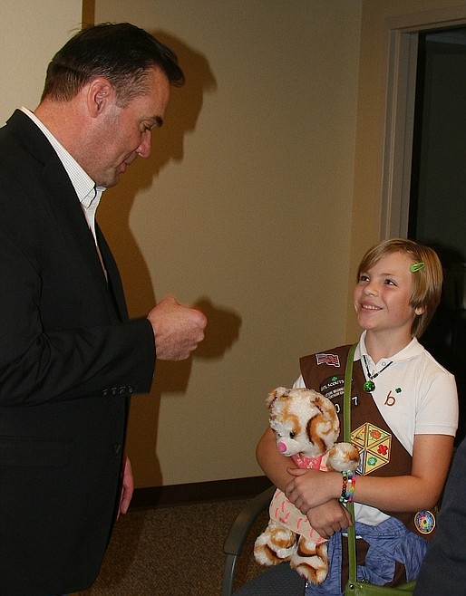 The Idaho freshman thanked Girl Scouts for their leadership and dedication during his stop in Kootenai County on Thursday.