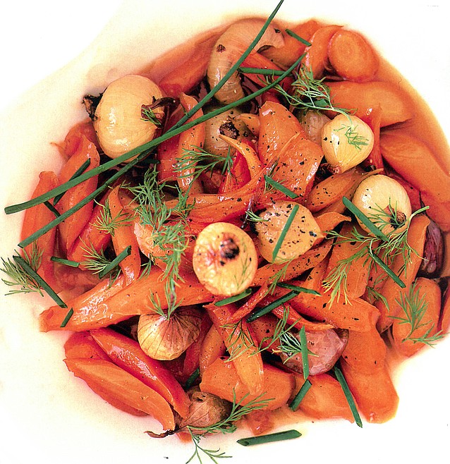 The humble carrot is too often served up as sticks on a buffet plate or grated into coleslaw as an afterthought when it has so much more to offer. With rainbow varieties at hand, purple, bright red, and yellow vie with the classic orange color for providing added glamour to veggie dishes. They’re best quickly cooked or steamed since some can lose their color a bit with longer boiling. Today we’ll explore some delightful recipes that give carrots their due. The first is our featured illustration. Enjoy!