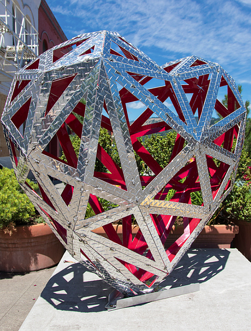 The piece, titled “Low-Poly Open Heart (RIDE),” by Matthew Duffy of Washington, D.C., is a large, painted metal heart sculpture. It was in the top six during the Sandpoint Art Commission’s initial selection process from the 22 applications received, commission chair Elle Susnis said.