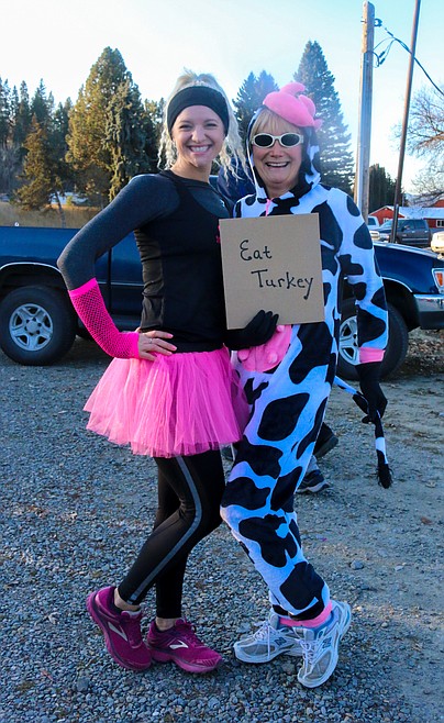 The countdown was followed by 121 people gobbling like turkeys, a sound that could be heard as far away as the Kootenai River, and then they were off on the 11th running of the Turkey Trot, a 5K/10K fun run.