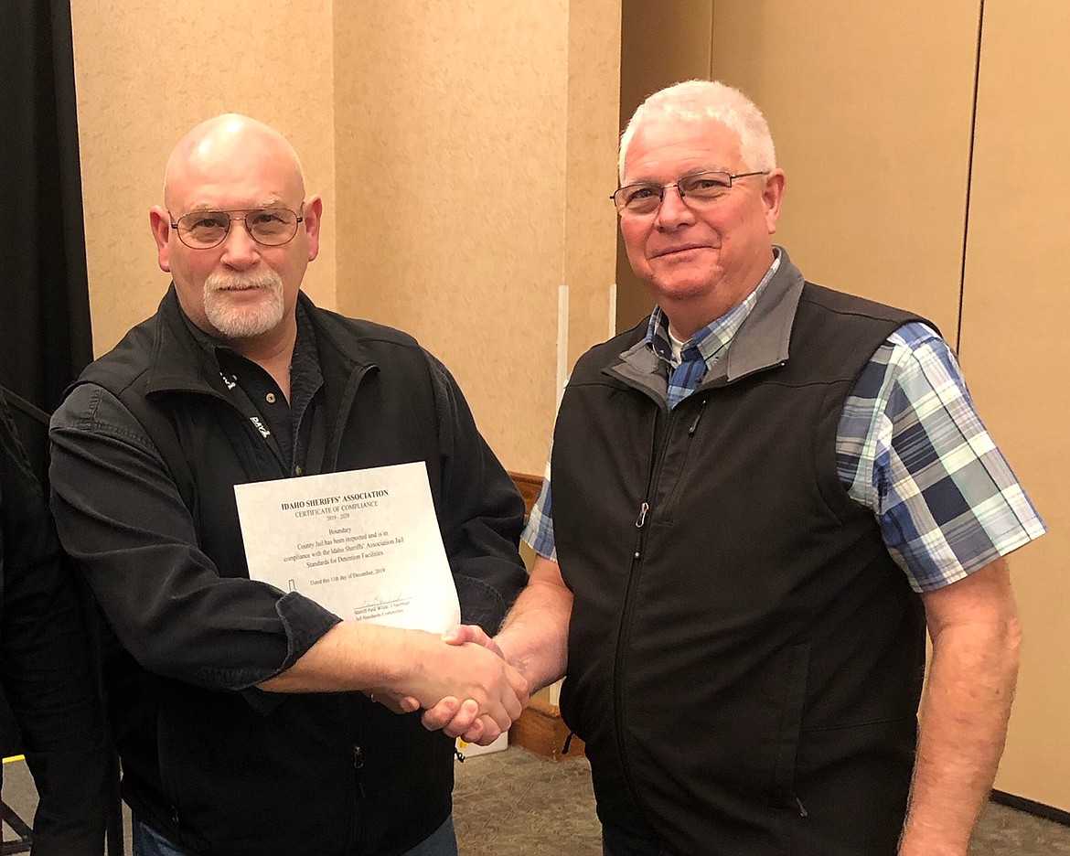 At the Idaho Sheriff’s and Jail Administrators training conference last week in Boise, Sheriff Dave Kramer and jail Sgt. Jeff Hoff received the 2019-20 certification for Boundary County jail.