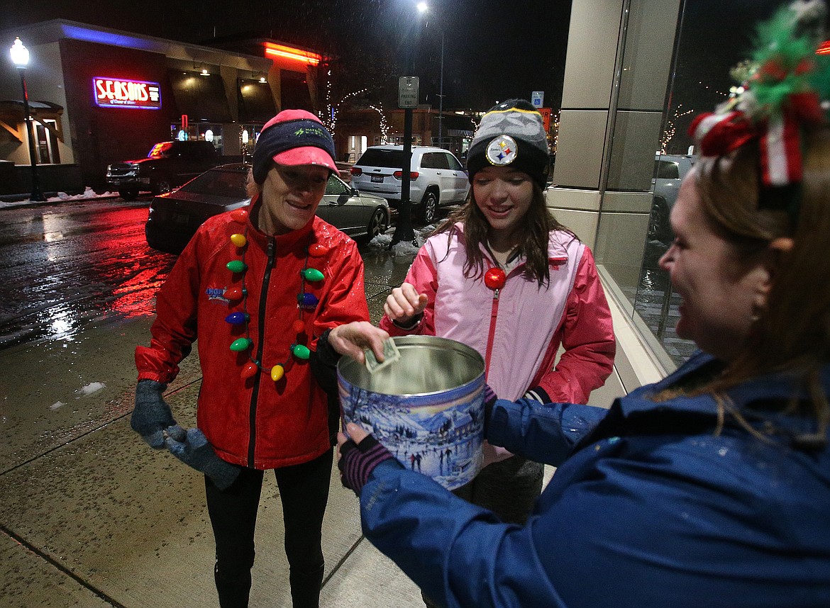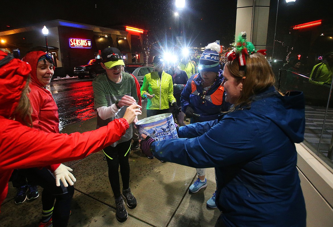 Over puddles and streams, through the pouring rain, runners stopped by the Coeur d'Alene Press building to drop their hard-earned cash into the collection bucket for Press Christmas for All.