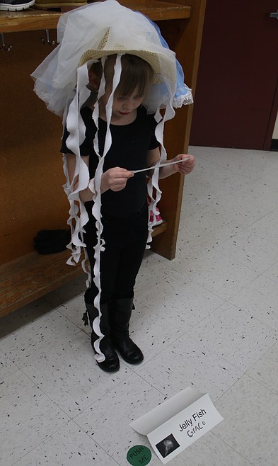 “I can come in all colors — pink, yellow, blue or purple,” said Grace Huebner, though the youngster had white tentacles streaming from the lace covered hat that made an ideal octopus costume for the storybook wax museum event.