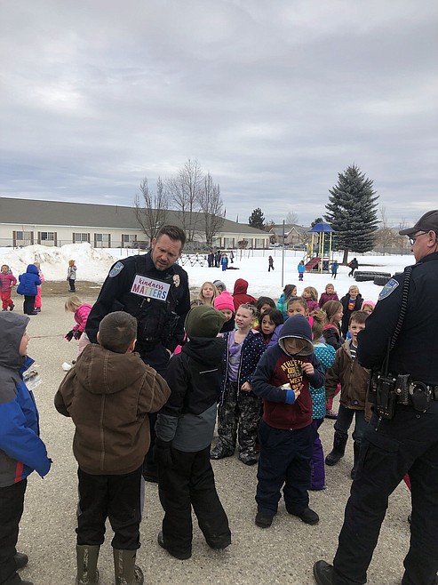 Farmin Stidwell students were visited by local community members who also believe in the mission to spread kindness. The Sandpoint Police Department shared positive messages and kind words with students during recess, passing out kindness stickers and giving high fives.