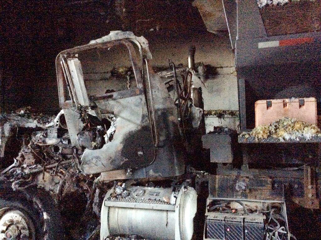 The truck that caught fire had been parked in the shop at 10 a.m. the previous Friday. Trucks are loaded with traction gravel and then parked in the heated shop so the gravel is not frozen and can be disbursed on the next run.