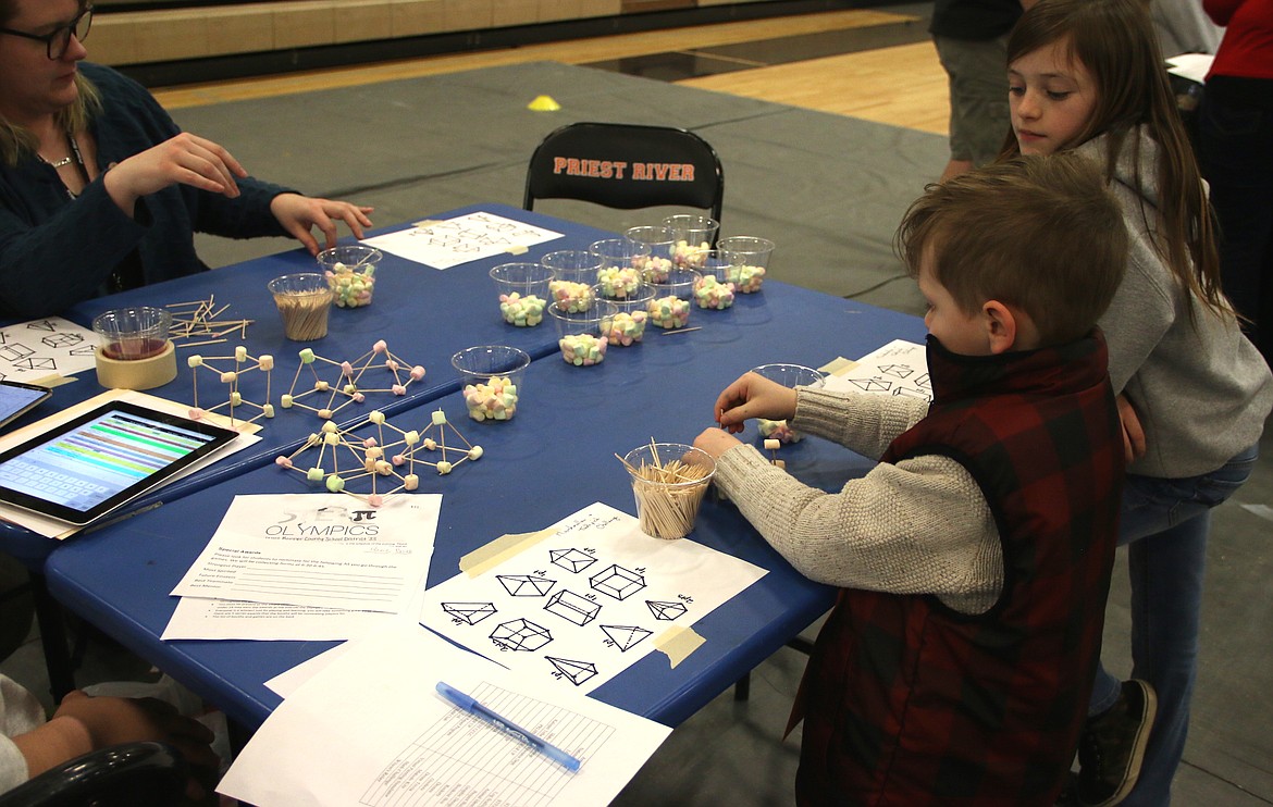 Elanna Philipoff, STEaM Club treasurer and Priest River Elementary teacher, said the STEaM Olympics is an event for the whole family. During the event, kids of all ages, along with their parents, formed teams with the goal of completing activities to gather as many points as possible.