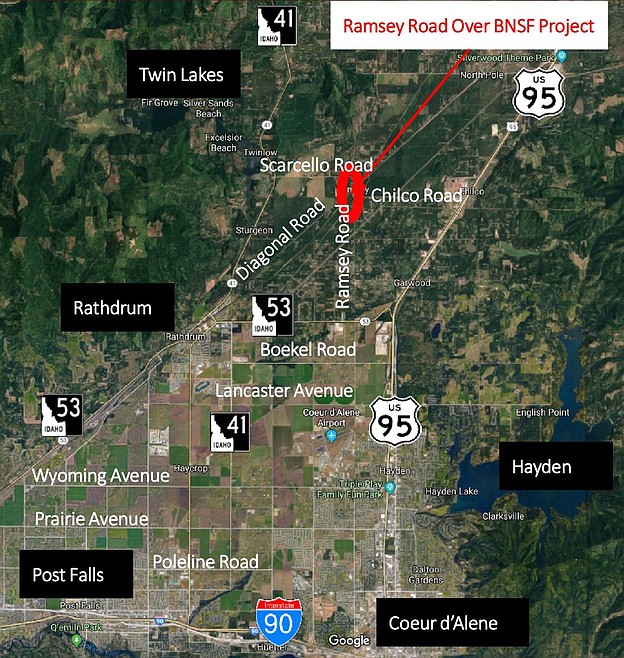 A bridge will be built on Ramsey over the BNSF Railway tracks and Diagonal Road between Chilco and Scarcello roads.